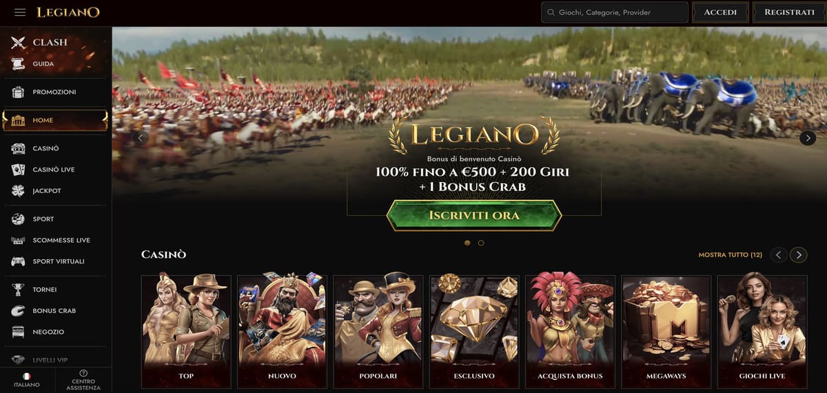 - Offerte di Giri Gratis: La sua identità ibrida, che fonde scommesse e una ricca promo casino giri gratis, si manifesta in un bonus di benvenuto con 200 giri gratuiti, attivabili con un deposito minimo, più il 100% sul primo deposito fino a €500 e un Bonus Crab.
